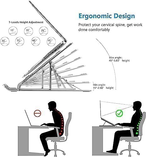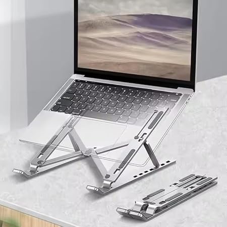 Generic - حامل لابتوب معدني قابل للتعديل – مريح، قابل للطي وثابت للاستخدام في العمل والدراسة