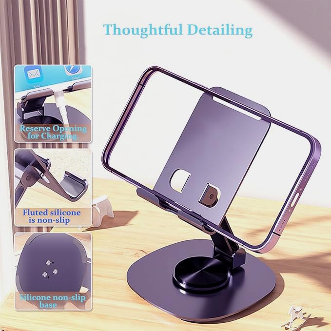 Generic - حامل موبايل قابل للتعديل للمكتب - دعامة معدنية دوارة 360 درجة - حامل موبايل محمول قابل للطي - ارجواني