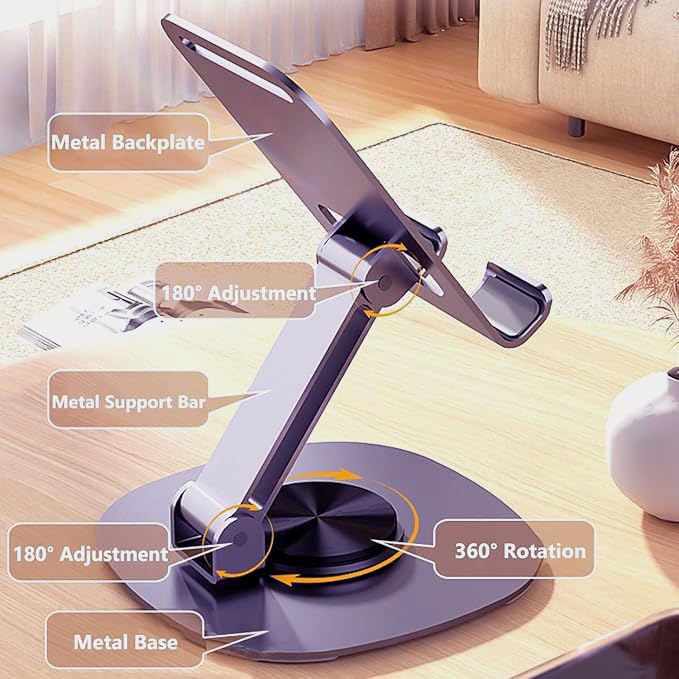 - تصميم متعدد الاستخدامات: حامل دوار 360 درجة بزوايا عرض متعددة، مثالي لكل من الاتجاهات الرأسية والأفقية