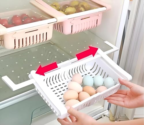 Generic - صينية تخزين بلاستيكية قابلة للتعديل للثلاجات، منظم متعدد الألوان للطعام، مثالية لزيادة المساحة والحفاظ على مطبخك منظمًا
