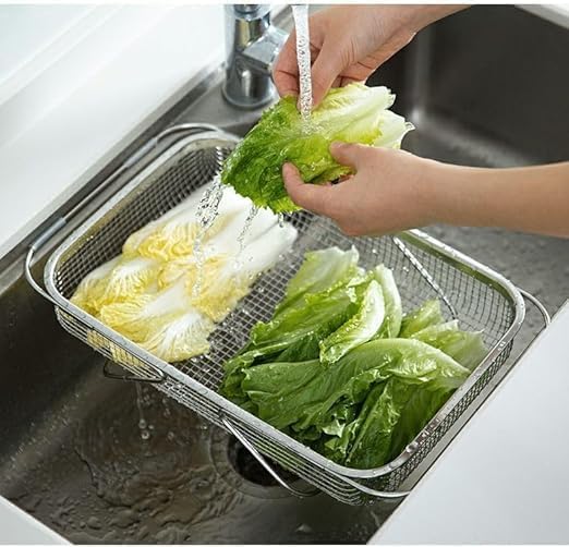 - 【شكل مستطيل ثابت】يسمح الشكل المستطيل للمصفاة بالجلوس بأمان عبر حواف الحوض، مما يوفر توازنًا محسنًا مقارنة بالبدائل المستديرة، مما يساعد المستخدمين على الشعور بمزيد من الثقة أثناء الاستخدام مع تقليل النقل أو الانقلاب، مما يؤدي إلى تجربة أكثر راحة وتحكم عند أداء مهام المطبخ المتكررة طوال اليوم
