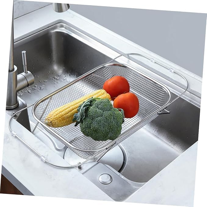 Generic - مصفاة حوض مستطيلة قابلة للتعديل من الستانلس ستيل بحجم كبير مقاومة للصدا بتصميم قابل للتوسيع يناسب جميع الاحواض سهلة التخزين والاستخدام اليومي والمطبخ والطبخ المنزلي