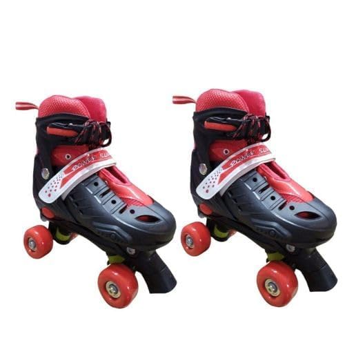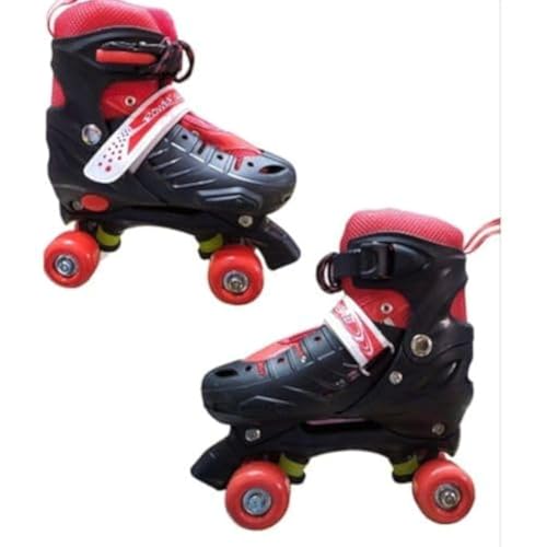 Generic - حذاء تزلج بعجلات قابل للتعديل، صفين، (4 عجلات)، أحمر/أسود - مقاس M، قطعتان