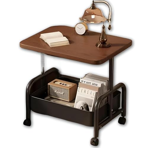 Generic - طاولة جانبية قابلة للتعديل - طاولة جانبية دوارة من الخشب والمعدن مع عجلات، حجم صغير لغرف النوم او مناطق المعيشة او المكاتب المنزلية مع جاذبية عصرية