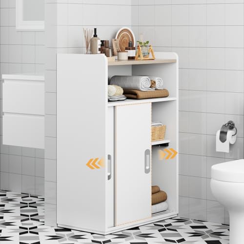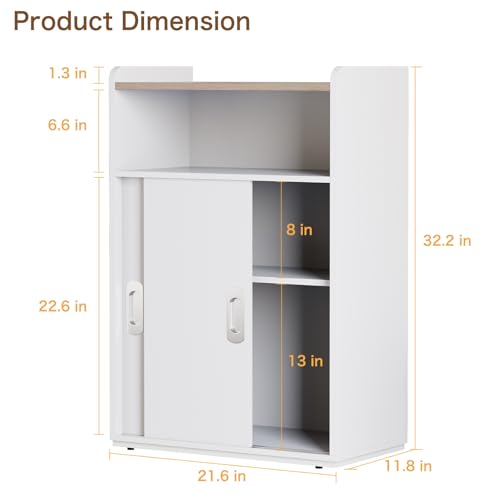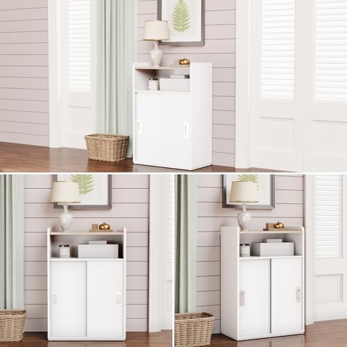 PROXRACER - خزانة تخزين قابلة للتعديل مع ابواب منزلقة، منظم متعدد الوظائف مع رفوف من طبقتين، تصميم بارتفاع قابل للتعديل، خزانة صغيرة للمساحات الصغيرة وغرفة النوم وغرفة المعيشة او المكتب (ابيض)