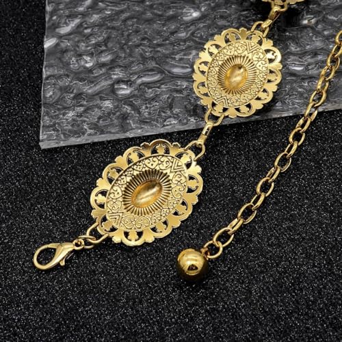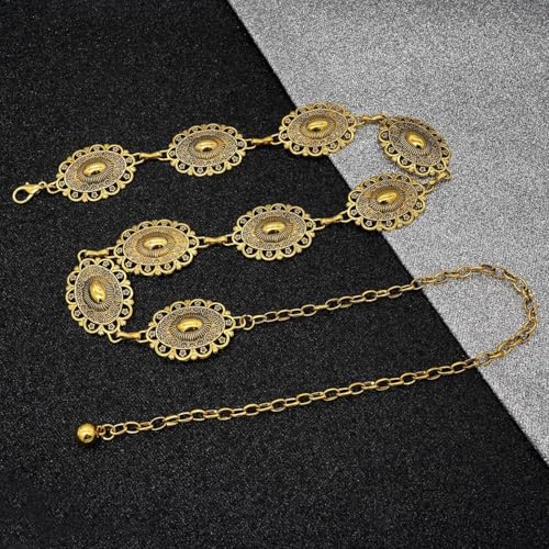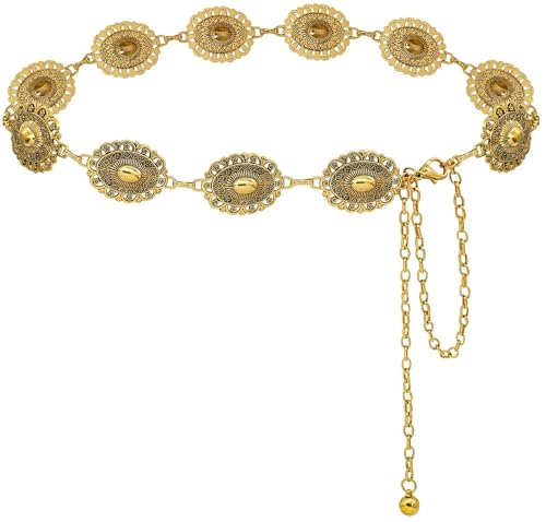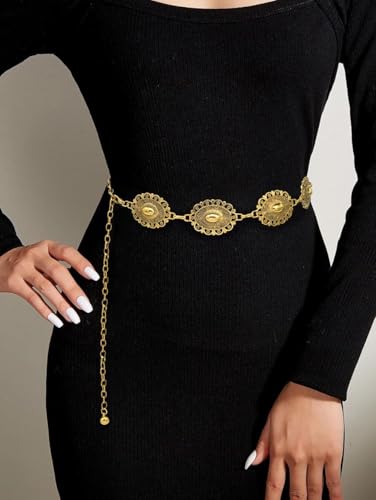 Generic - سلسلة خصر قابلة للتعديل - حزام ذهبي اللون مزين بأقراص ميدالية وشراشيب متدلية، تصميم بوهيمي كلاسيكي مقاوم للصدأ مثالي لفساتين الصيف والمناسبات والأحداث الثقافية.