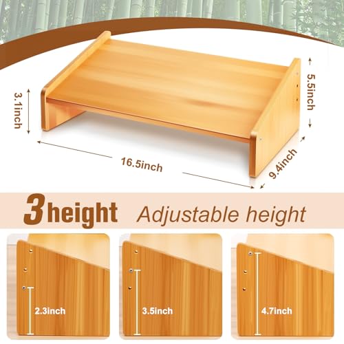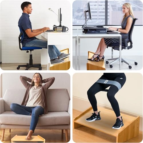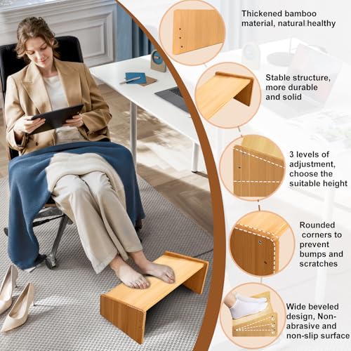 jhpsnpow - مسند قدم خشبي قابل للتعديل لتحت المكتب، مسند قدم مريح للمكتب مع 3 أوضاع ارتفاع، مقعد طويل للقدم مناسب للعمل واللعب، طاولة مسند ساق طويلة محمولة من الخيزران كهدية للمنزل، سعة 90.7 كجم