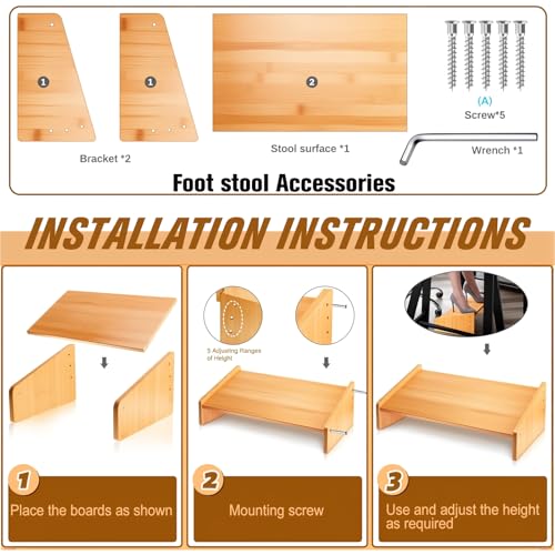 - خشب الخيزران المتين والقوي: عتبة القدم المحمولة مصنوعة من خشب الخيزران الطبيعي الذي يعد أكثر صحة وأمانًا. يتميز خشب الخيزران بخصائص هيكلية أفضل. مسند الساق يمكنه حمل ما يصل إلى 200 باوند