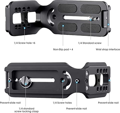 • 【تطبيق وتوافق على نطاق واسع】هذه اللوحة سريعة الفك مناسبة لمعظم الكاميرات أو دي اس ال ار، مثل كانون EOS 80D T6 5D مارك i 6D D800 T6i 1300D سوني a7riii a7S a6000 a6300 نيكون D750 D850 D3400 0 D56 00 D7200 ويمكن استخدامه على مثبت جيمبال أيضًا