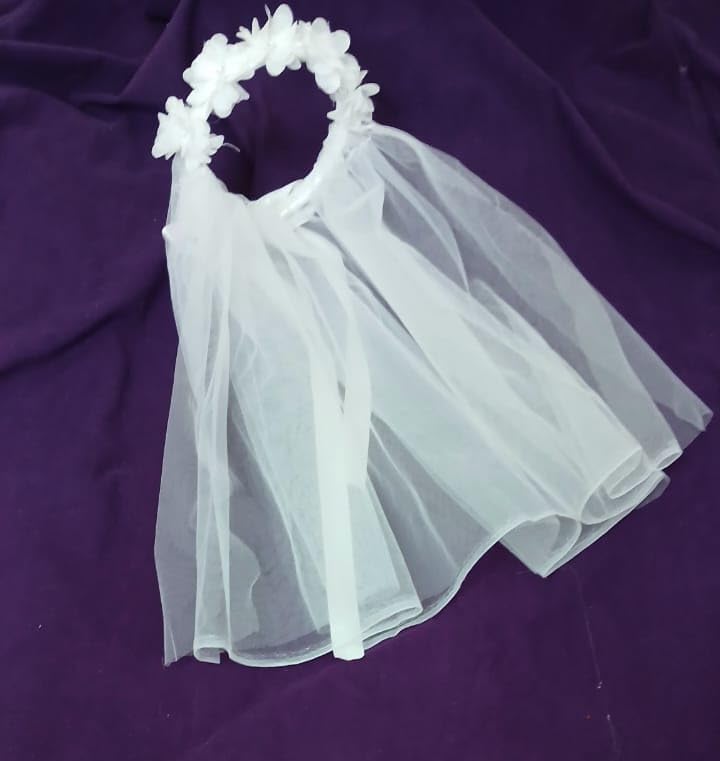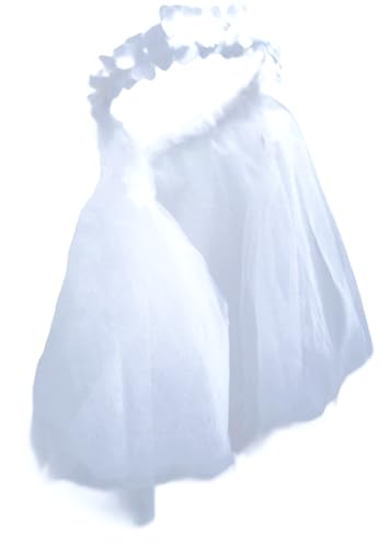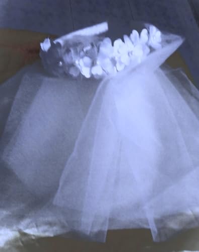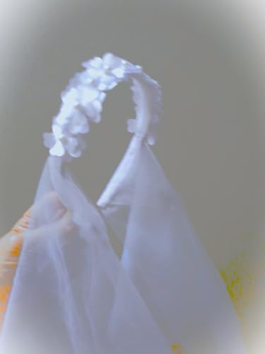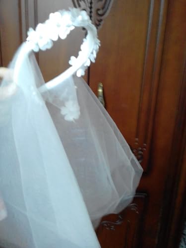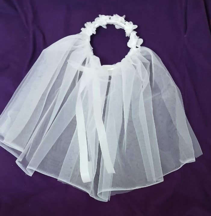 Generic - طرحة عروسة رائعة للبنات الصغيرات لحفلات الزفاف،وأعياد الميلاد طوق ورد أبيض للأطفال , وشاح تول للأطفال حاملات شعر عصابات رأس