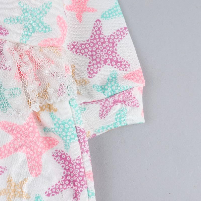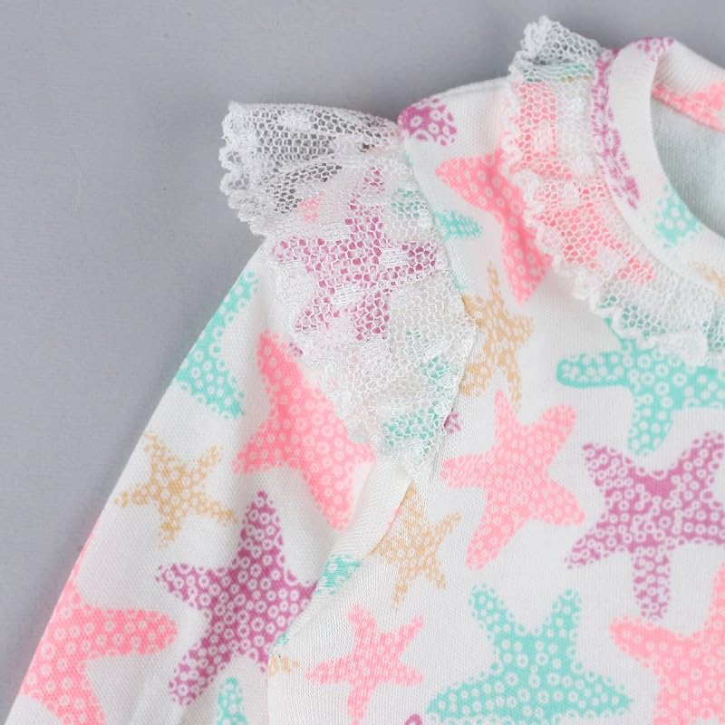 Generic - سالوبيت قصير بأكمام طويلة بطبعة نجم البحر الرائع مع كشكشة للأطفال بعمر 6 إلى 9 أشهر
