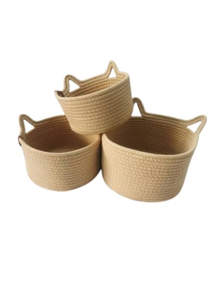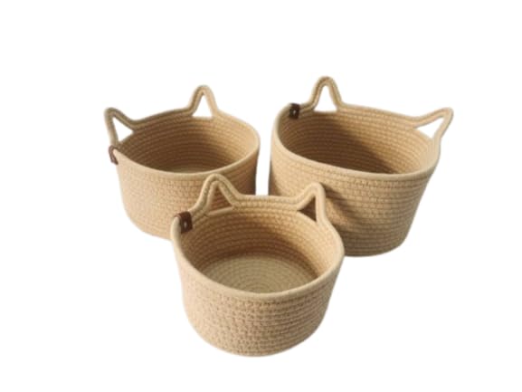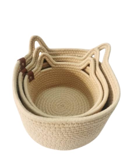 - ✨ جماليات أنيقة ورائعة: ارتقِ بديكور منزلك مع سلالنا التي تتميز بمقابض أذن قطة مصممة بشكل فريد. يعزز الملمس الرقيق جاذبيتها البصرية، مما يجعلها ليست مجرد حلول تخزين ولكن قطع ديكور ساحرة. مثالية لمحبي الحيوانات الأليفة أو أولئك الذين يحتفلون بفرد جديد من العائلة المكسو بالفراء.