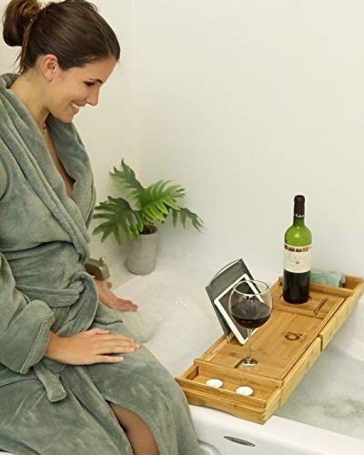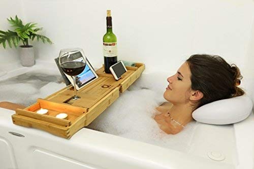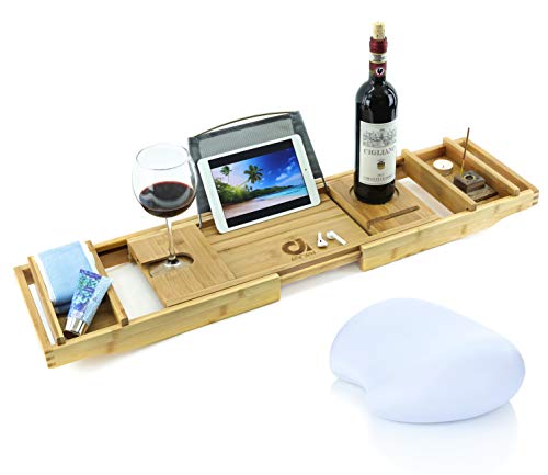 - ✓ "عرض محدود الوقت" صينية حوض استحمام مصممة حديثًا مع جوانب قابلة للتمدد، تفتح حتى 43 انش + ! تخيل الانغماس في حوض استحمام ساخن أثناء استخدام موبايل ايفون الخاص بك، أو مشاهدة برنامجك التلفزيوني المفضل أو ببساطة قراءة كتابك المفضل أثناء الاستمتاع بكأس من النبيذ (أو المشروبات المفضلة) دون القلق بشأن انقلابه. تسمح لك هذه العلبة/ الصينية المذهلة بالقيام بذلك. ولكن هذا ليس كل شيء! بالإضافة إلى علبة حوض الاستحمام الراقية هذه، ستحصل أيضًا على وسادة حمام مريحة للاستجمام.