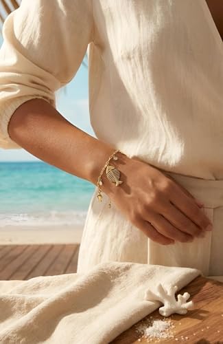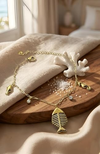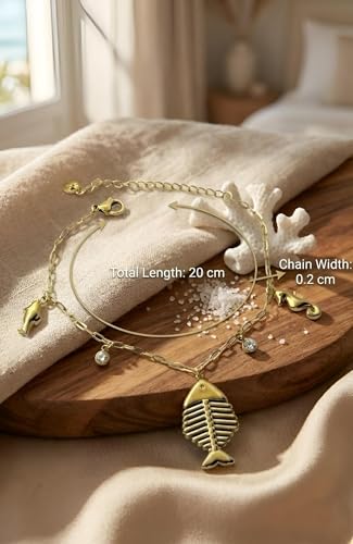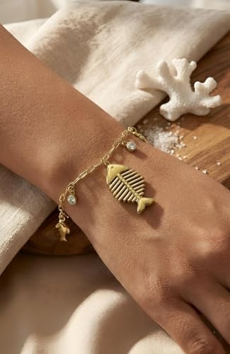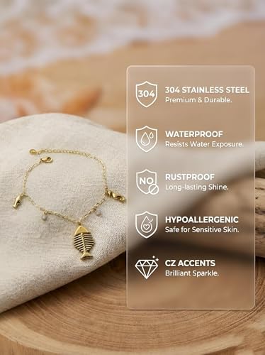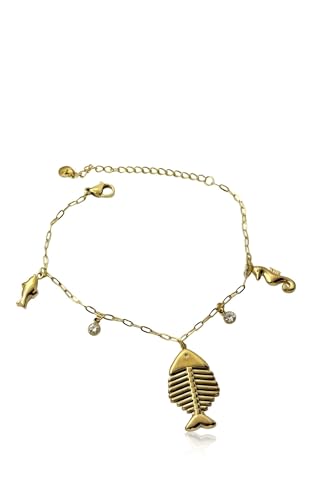 Generic - سوار بحري من الستانلس ستيل 304 مقاوم للماء للنساء من ادورنمنت بلون ذهبي، يتميز بأنماط سمكة الزركون وفرس البحر، اكسسوار مجوهرات لا يسبب الحساسية