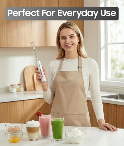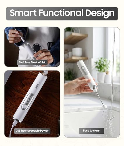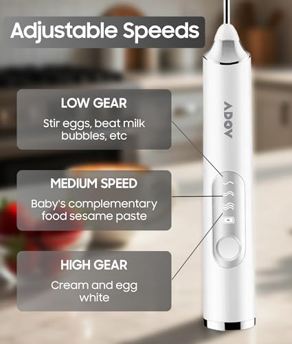 ADOV - أداة خفق اللبن محمولة مضرب قهوة كهربائي ويدوي من الفولاذ المقاوم للصدأ ومضرب بيض تعمل ببطارية قابلة للشحن أداة خفق اللبن اوتوماتيكية للمشروبات مثل لاتيه وكابتشينو وشوكولاتة ساخنة وماتشا من ادوف، أبيض
