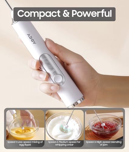 - 【مادة عالية الجودة】تأتي أداة خفق اللبن الكهربائية من ادوف مع رؤوس خفق قابلة للفصل من الفولاذ المقاوم للصدأ والجسم الرئيسي مصنوع من بلاستيك ايه بي اس الآمن غذائيًا. محرك قوي منخفض الضوضاء يعزز متعة الاستخدام.