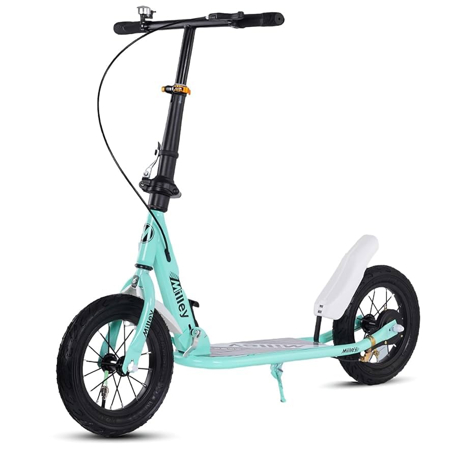 Generic - سكوتر ركل قابل للطي 330 باوند للبالغين والمراهقين، عجلة كبيرة، ارتفاع قابل للتعديل، فرامل تثبيت خلفية، سكوتر رياضي خفيف الوزن، هدية مثالية للاطفال والبالغين، اخضر