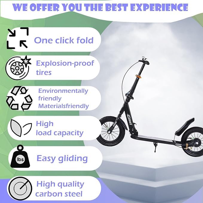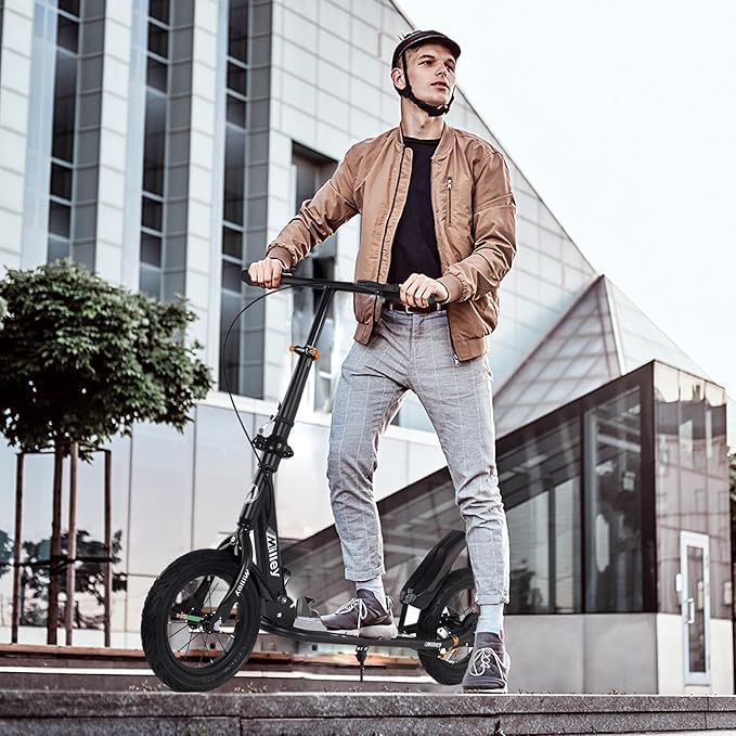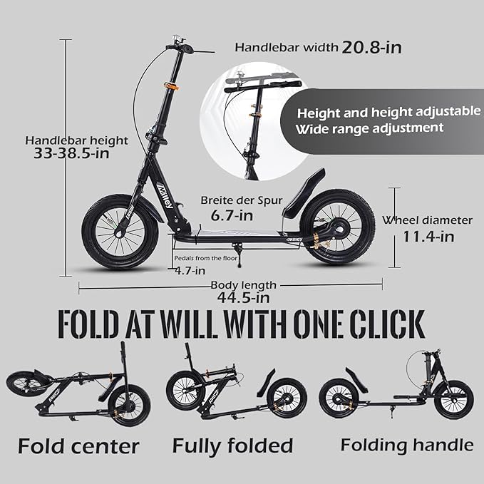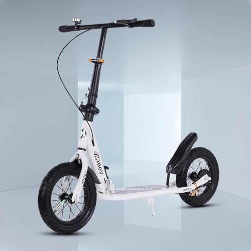 Generic - سكوتر ركل للتنقل بتصميم قابل للطي للبالغين والمراهقين مع عجلات كبيرة وارتفاع قابل للتعديل وفرامل يد خلفية، سكوتر رياضي خفيف الوزن للتنقل، للأطفال والمراهقين والبالغين، أبيض، يتحمل 150 كجم