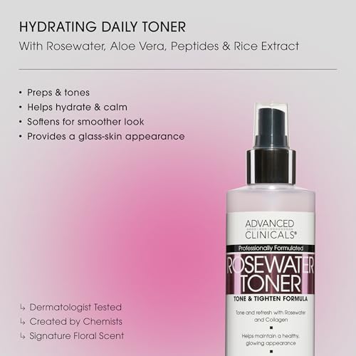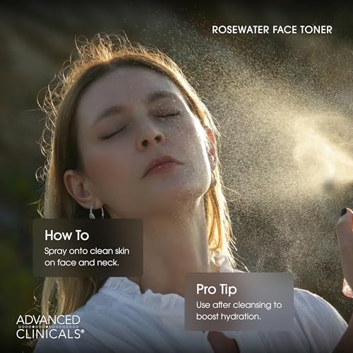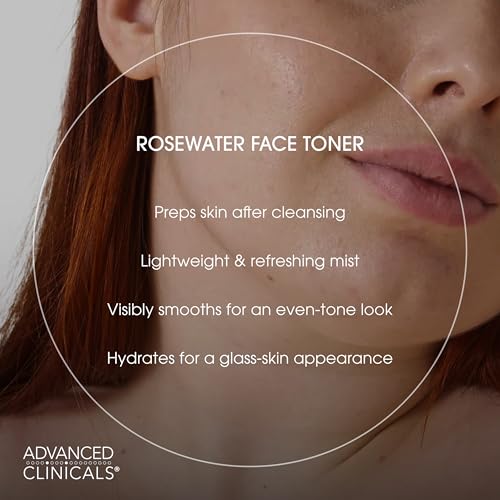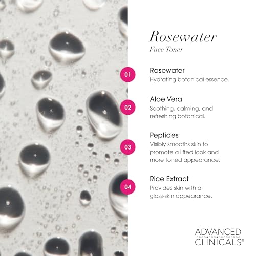 Advanced Clinicals - تونر ماء الورد من ادفانسيد كلينيكالز بخلاصة الفحم والالوفيرا تركيبة توازن درجة الحموضة وتخلص من السموم وترطب البشرة وتحسن اللون بشكل عام، خال من الكحول، وزن 8 اونصة، متعدد الالوان