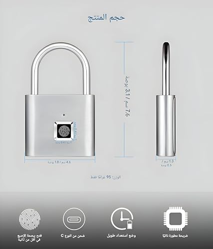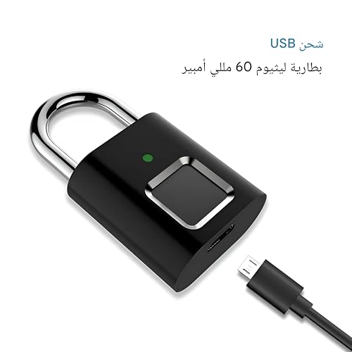 - مزود ببطارية USB قابلة لإعادة الشحن، يمكنك شحن القفل بسهولة ونسيان استبدال البطاريات بشكل متكرر، مما يضمن الأمان المستمر دون انقطاع.