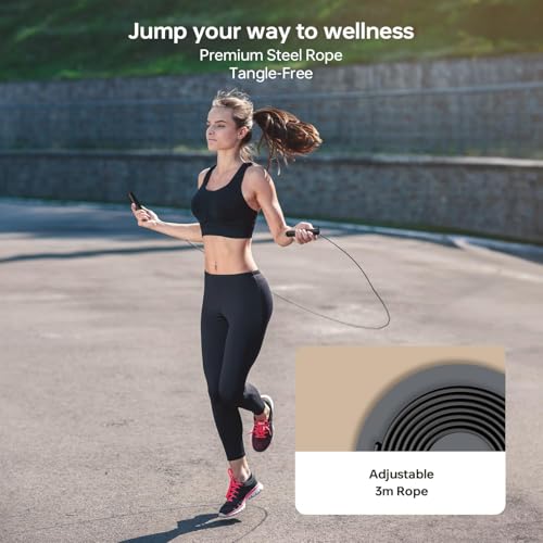- عداد رقمي مدمج لتتبع دقيق: لا داعي للقلق بشأن عد القفزات؛ يتتبعها العداد الرقمي المدمج بدقة لمساعدتك على تحقيق أهداف لياقتك البدنية