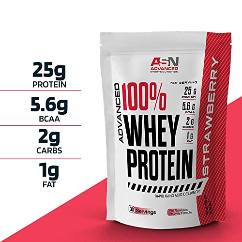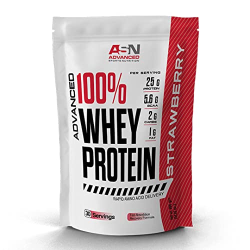 Advanced - ادفانسد سبورتس نيوترشن (ايه اس ان) بروتين مصل اللبن 100% فراولة 30 حصة 25 غرام عالي اداء اميني مثالي BCAA بناء العضلات امتصاص سريع 120 سعرة حرارية