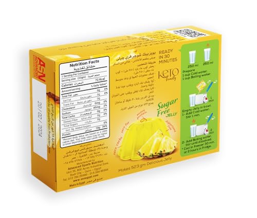 Advanced Sports Nutrition - بودرة جيلي بوب بيك خالي من السكر من ادفانسد سبورتس نيوترشن | مناسب لنظام الكيتو | 72 سعرة حرارية | 18 جرام بروتين | 0 جرام كربوهيدرات | 0 جرام دهون | نكهة الأناناس | يصنع 523 جرام جيلي
