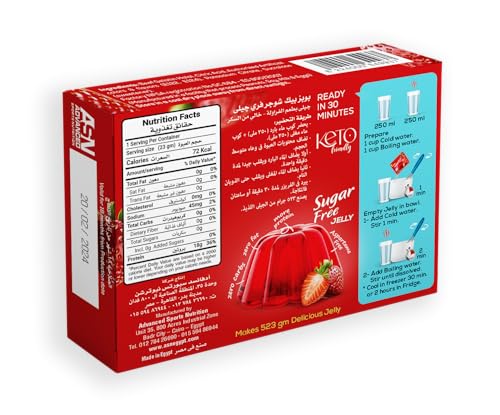 Advanced Sports Nutrition - جيلي بوبز بيك شوجر فري جيلي خالي من السكر، مناسب لحميات الكيتو، 72 سعرة حرارية، 18 جم بروتين، 0 جم كربوهيدرات، 0 جم دهون، نكهة فراولة، عبوة كافية لصنع 523 جم جيلي لذيذ من ادفانسد سبورتس نيوترشن