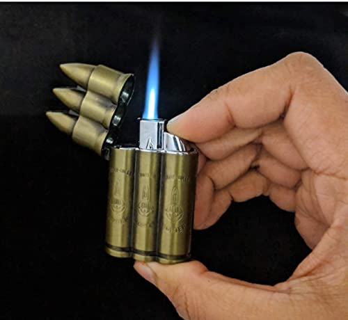 Advenga - ولاعة معدنية على شكل رصاصة من ادفينجا - ولاعة جيب - ولاعة سجائر مقاومة للرياح قابلة لإعادة الملء للجنسين (ذهبي) (شكل رصاصة ثلاثية)