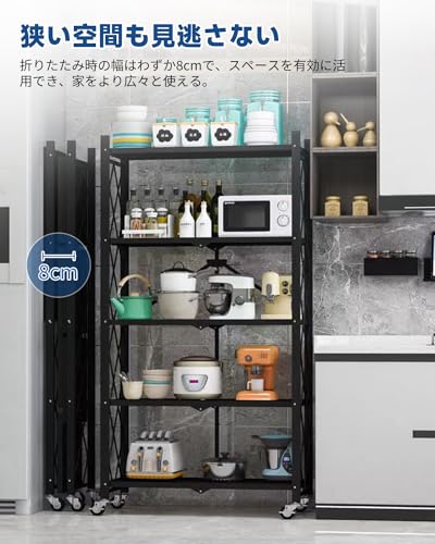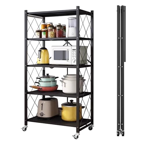 AEEZO - رف قابل للطي، 5 طبقات، عرض 18.0 × عمق 5.4 × ارتفاع 61 انش (71 × 34 × 155 سم)، رف ستيل، عجلات، رف معدني، رف مطبخ، رف رف، رف شديد التحمل، رف تخزين،