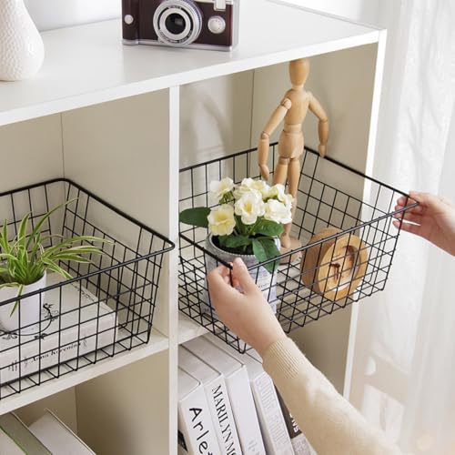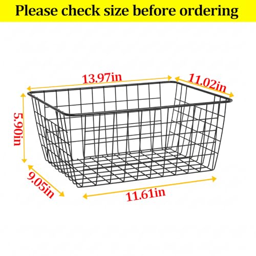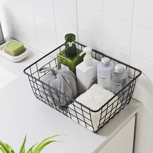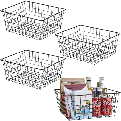 Aeggplant - سلال تنظيم للمطبخ مصنوعة من سلك معدني لديكور بيت المزرعة، علب ثلاجة منزلية بمقابض مدمجة للخزائن والمخزن والحمام وغرفة الغسيل من ايجزبلانت، أسود
