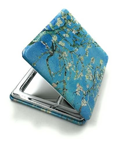 Aeisage - مراة صغيرة الحجم لوضع المكياج والمكياج اثناء السفر، مراة جيب صغيرة لوضع احمر الشفاه، مراة لوز بلوسوم فان جوخ، هدايا فنية للامهات