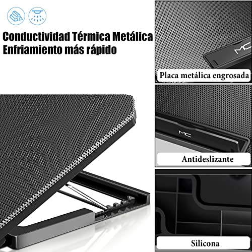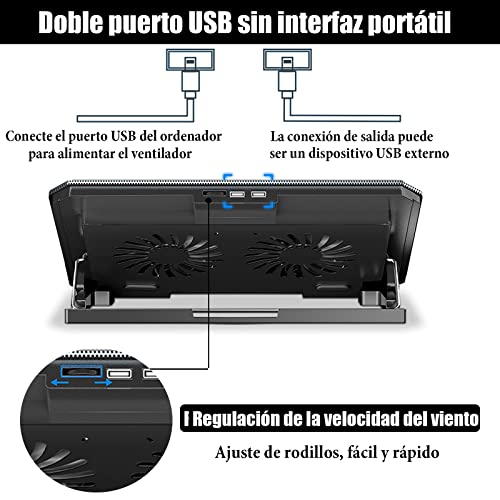 AEKOO - مبرد لاب توب قابل للتعديل بـ 4 ارتفاعات مع إضاءة ليد ومنفذين USB بتصميم تبريد هواء هادئ لأجهزة اللاب توب حتى 17 بوصة من ايكو (لون أسود)