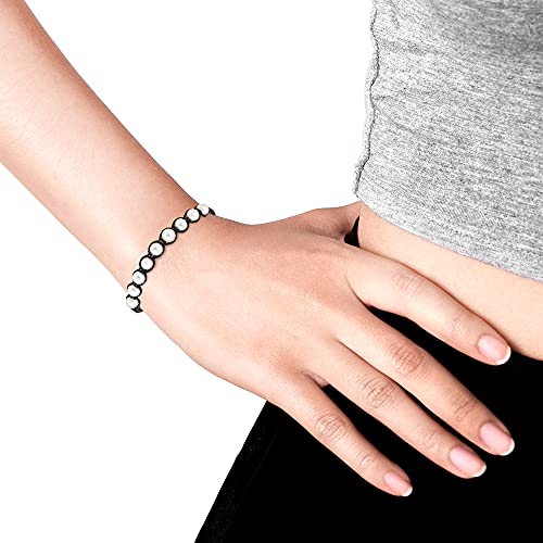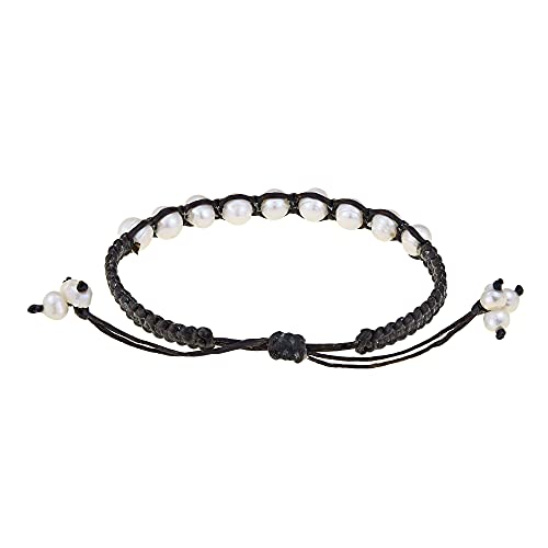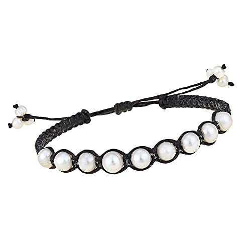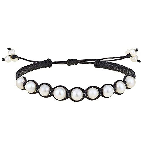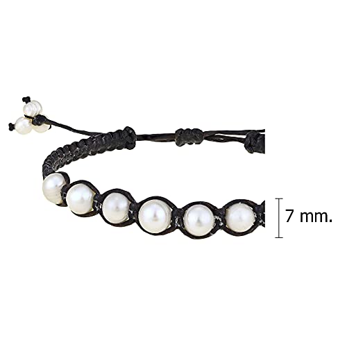 AeraVida - ايريافيدا سوار قطني بيضاوي لؤلؤي ابيض من لؤلؤ المياه العذبة | صغير | اساور خيط القطن | كاجوال للنساء | 7 انش