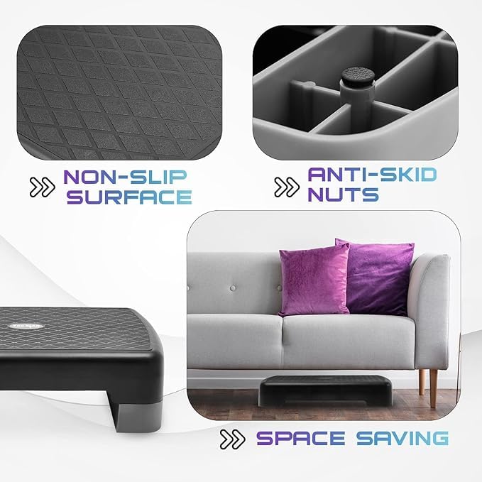 - سطح غير قابل للانزلاق: يوفر المنصة ذات السطح المخرش الماسي مزيدًا من الثبات والثبات لتجربة تمرين ثابتة وموفرة للمساحة ومريحة