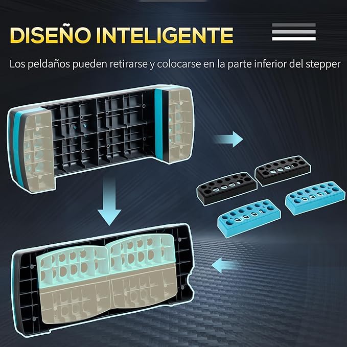 - تصميم ذكي: يمكن إزالة الخطوات ووضعها في الجزء السفلي من خطوة اللياقة الهوائية هذه، لذلك فإن تخزينها ونقلها مريحة للغاية