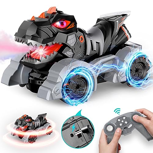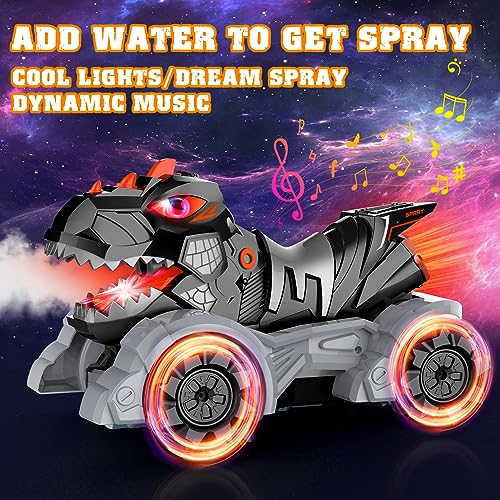 AEROQUEST - لعبة شاحنات مونستر للاولاد من ايروكويست، لعبة سيارة ديناصور بجهاز تحكم عن بعد 1/14 مع موسيقى خفيفة ورذاذ 2.4GHz للاطفال 5-7 8-12