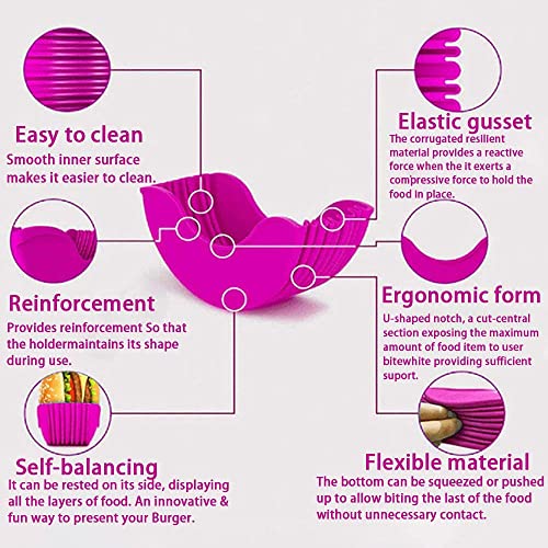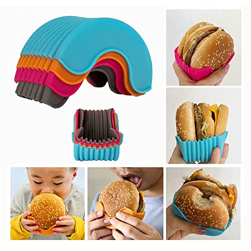 Aesackir - حوامل همبرجر سيليكون صحية امنة غذائيا قابلة للسحب واعادة الاستخدام، خالية من بيسيفينول ا وامنة في غسالة الاطباق، رف سندوتشات قابل للغسيل، 4 قطع من ايساكير