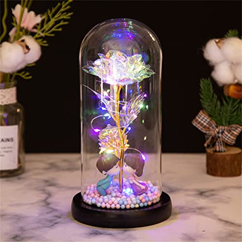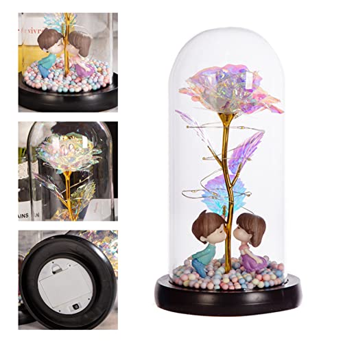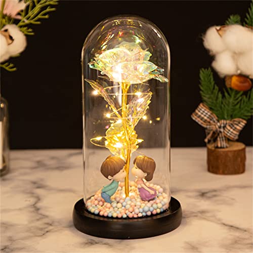 Roadoor - وردة زجاج بتصميم جمالي، زهرة ورد رومانسية مضيئة مناسبة للذكرى السنوية بإضاءة دافئة بلون أبيض (الإصدار الثاني)