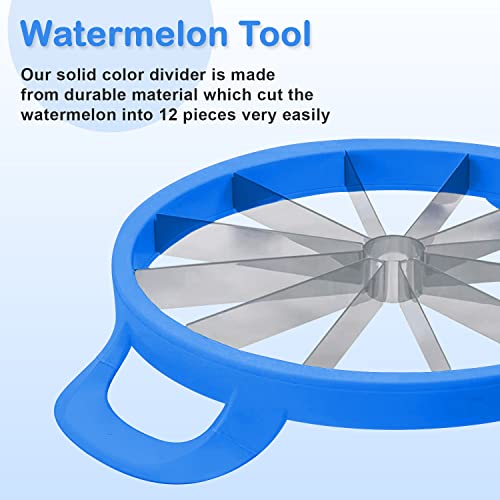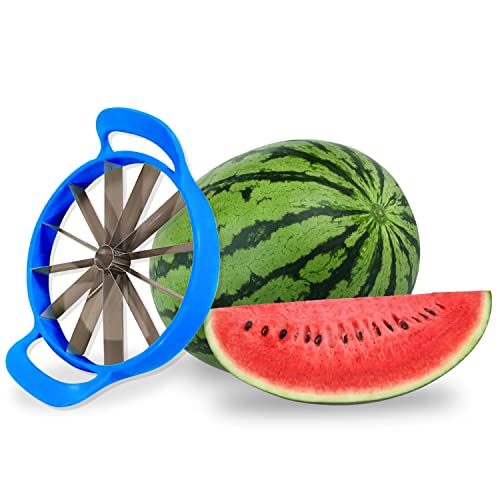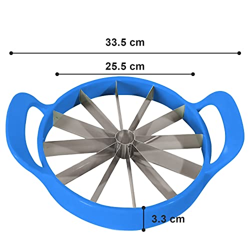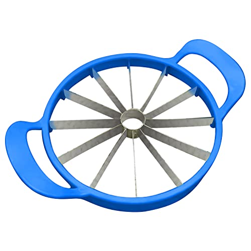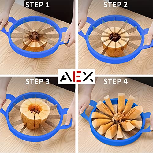 AEX - قطاعة البطيخ من الستانلس ستيل من ايه اي اكس، أداة تقشير وتقطيع البطيخ وتقشير الفاكهة بمقبض سهل الإمساك، أداة تقطيع حادة 12 شفرة 25.5 سم [أزرق]