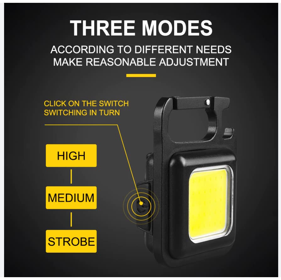 - يمكن أن يضيء كشافة سلسلة المفاتيح بقدرة 500 لومن بحد أقصى. يوفر إضاءة ساطعة مع زاوية واسعة. تتيح إضاءة LED الفنية COB الكبيرة استخدام هذا المصباح كإضاءة صغيرة للتشغيل وإضاءة الطوارئ.
