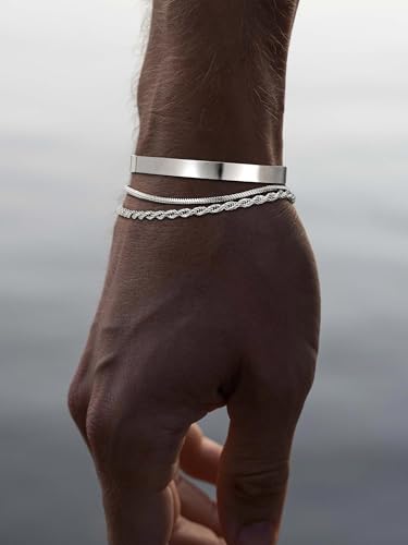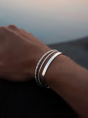 Affolace - سوار سلسلة من 3 قطع للرجال، سوار أنيق من الفضة الاسترلينية سهل التخزين بتصميم بسيط غير دنماركي على شكل ثعبان، مجموعة أساور حلقية للرجال مقاس 16.5 و17.9 و19 و20 و21.6 و23 سم