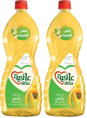 AFIA - زيت الطبخ من عافية، زيت ذرة سائل مدعم بفيتامين أوميغا 3، سعة 700 مل، عبوة من قطعتين