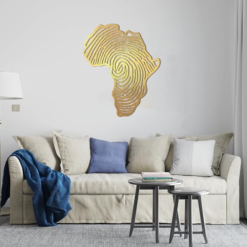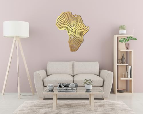 Home Gallery - تابلوه حائط 80 × 60 سم مصنوع من الخشب بتصميم خريطة إفريقيا على شكل بصمة، ذهبي
