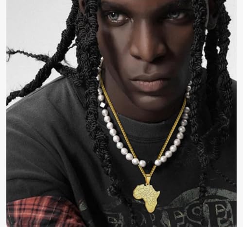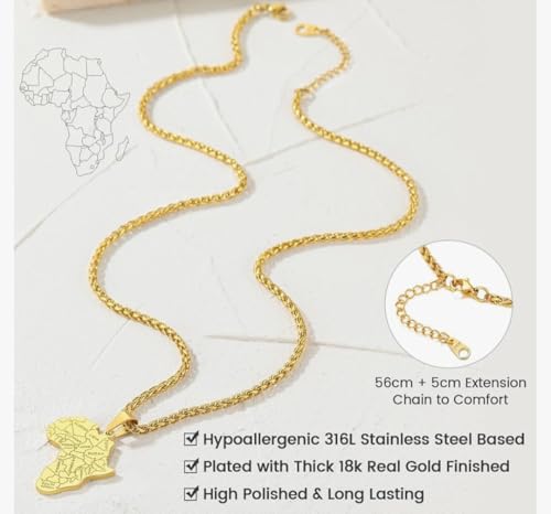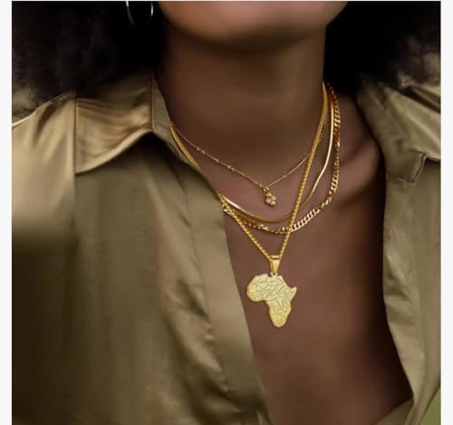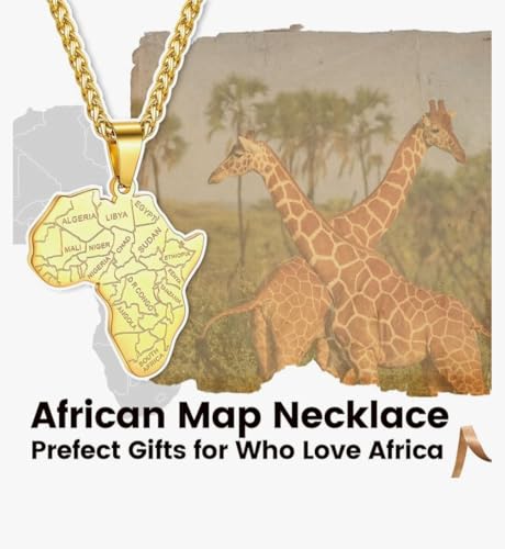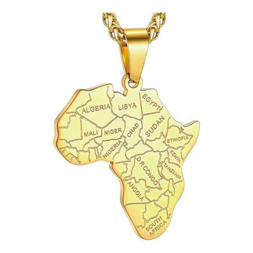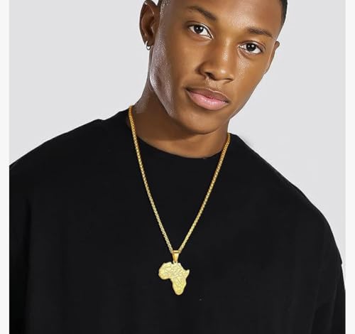 Generic - قلادة خريطة أفريقيا للرجال، مصنوعة من الفولاذ المقاوم للصدأ، على شكل قبلية أفريقية/عين حورس المصرية/أنا أحب أفريقيا/خريطة أفريقيا الفيل، مجوهرات الهيب هوب للجنسين مع سلسلة قابلة للتعديل