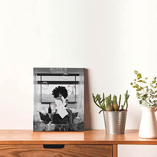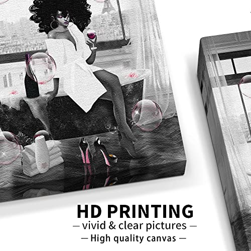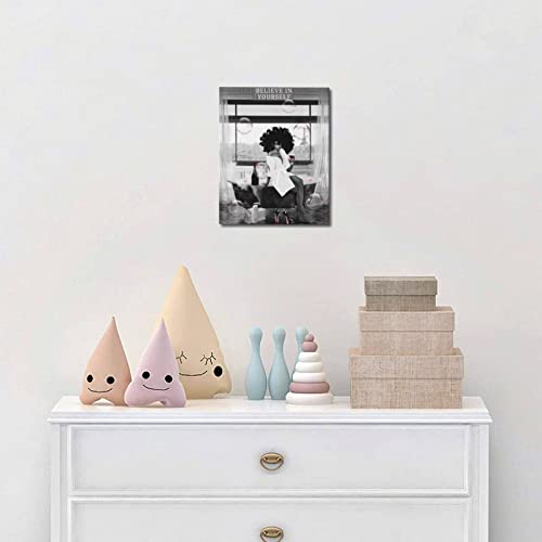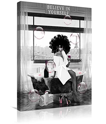WALLOHERE - تابلوه جداري من القماش جاهز للتعليق ومزود بإطار بتصميم عصري على شكل فتاة من أصل إفريقي في حوض الاستحمام، مناسب لديكور الحمام، 20.3×25.4 سم، متعدد الألوان