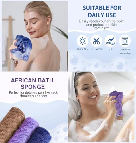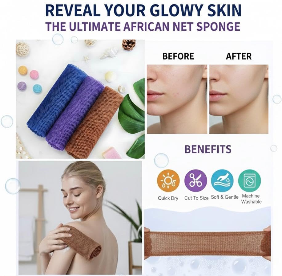 Generic - مجموعة ليفة استحمام أفريقية تتضمن ليفة شبكية طويلة للظهر مع إسفنجة تقشير مناسبة للتنظيف العميق وتقشير الجسم وإزالة الجلد الميت، 1 قطعة