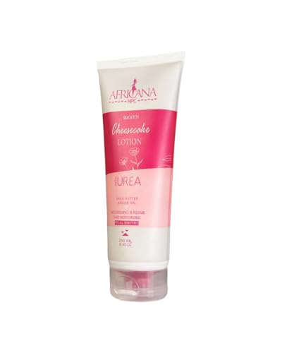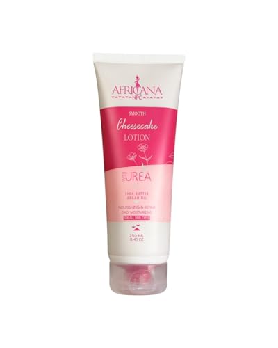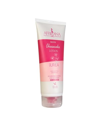 - تركيبة مغذية: يحتوي لوشن سموث تشيز كيك من أفريكانا على اليوريا وزبدة الشيا وزيت الأرغان لترطيب البشرة الجافة وإصلاحها بعمق لترطيب طويل الأمد.