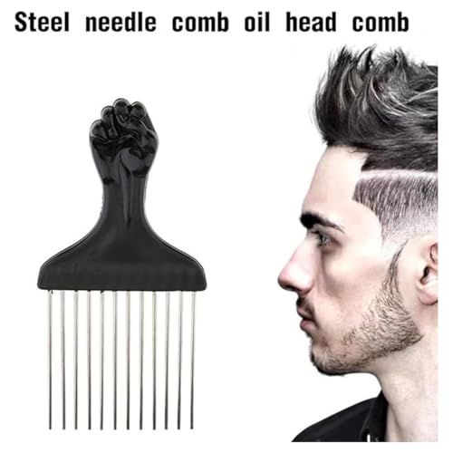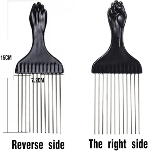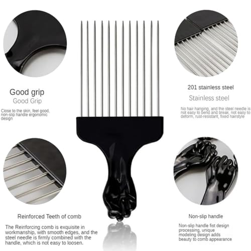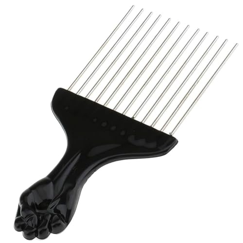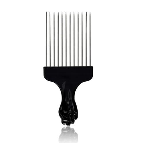 Generic - مشط للشعر الأفريقي - مشط بأسنان معدنية واسعة للشعر الكيرلي والملتف بشدة والشعر الأجعد، مشط فرد الشعر، ومشط اللحية وتصفيف الشعر، بمقبض على شكل قبضة سوداء