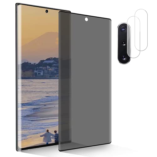 AFSKU - [1+2] واقي شاشة للخصوصية من الزجاج المقوى لموبايل سامسونج جالاكسي نوت 10 بلس + عدسة الكاميرا [حماية الخصوصية] [حساس للمس] [تغطية حافة ثلاثية الأبعاد] [صلابة 9] [بدون فقاعات] شفاف